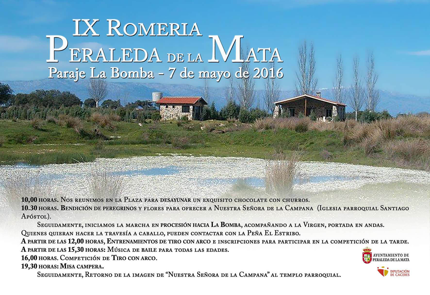 El próximo sábado, 7 de Mayo, se celebra la IX Romería en honor a "Nuestra Señora de la Campana" en el paraje de la Bomba. Las actividades comienzan a partir de las 10 de la mañana con el tradicional desayuno en la PLaza. Seguidamente, bendición de flores y marcha en procesión hasta La Bomba. La jornada romera se completará con una competición de tiro con arco, música y una misa campera.
