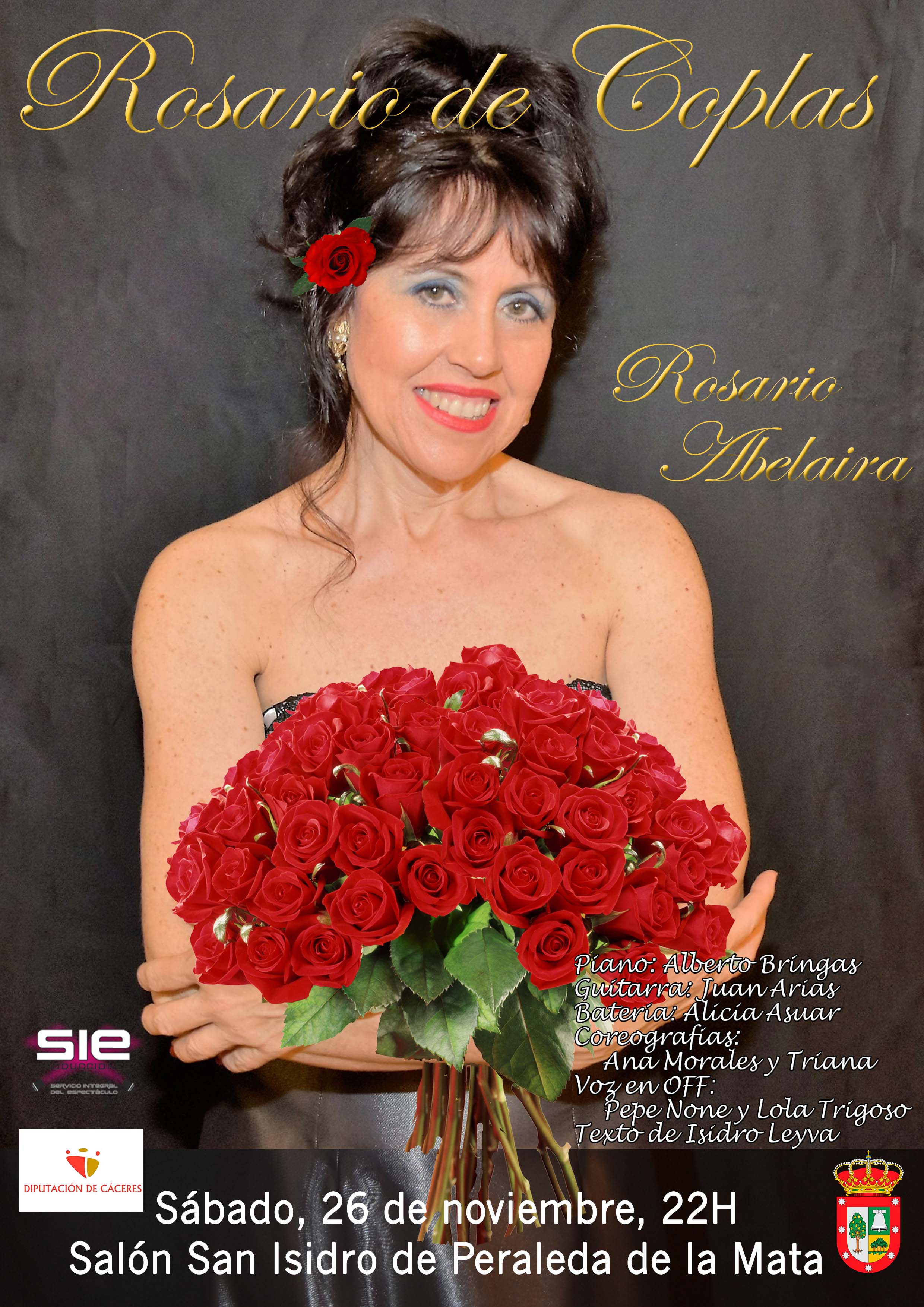 Peraleda de la Mata acogerá el sábado, 26 de NOviembre de 2016, el espectáculo "Un Rosario de Coplas" de la artista Rosario Abelaira . Será en el Salón San Isidro a partir de las 22,00 horas. La actuación está financiada por la DIputación de Cáceres, en el marco del Programa "Por Coplas y Bulerías".