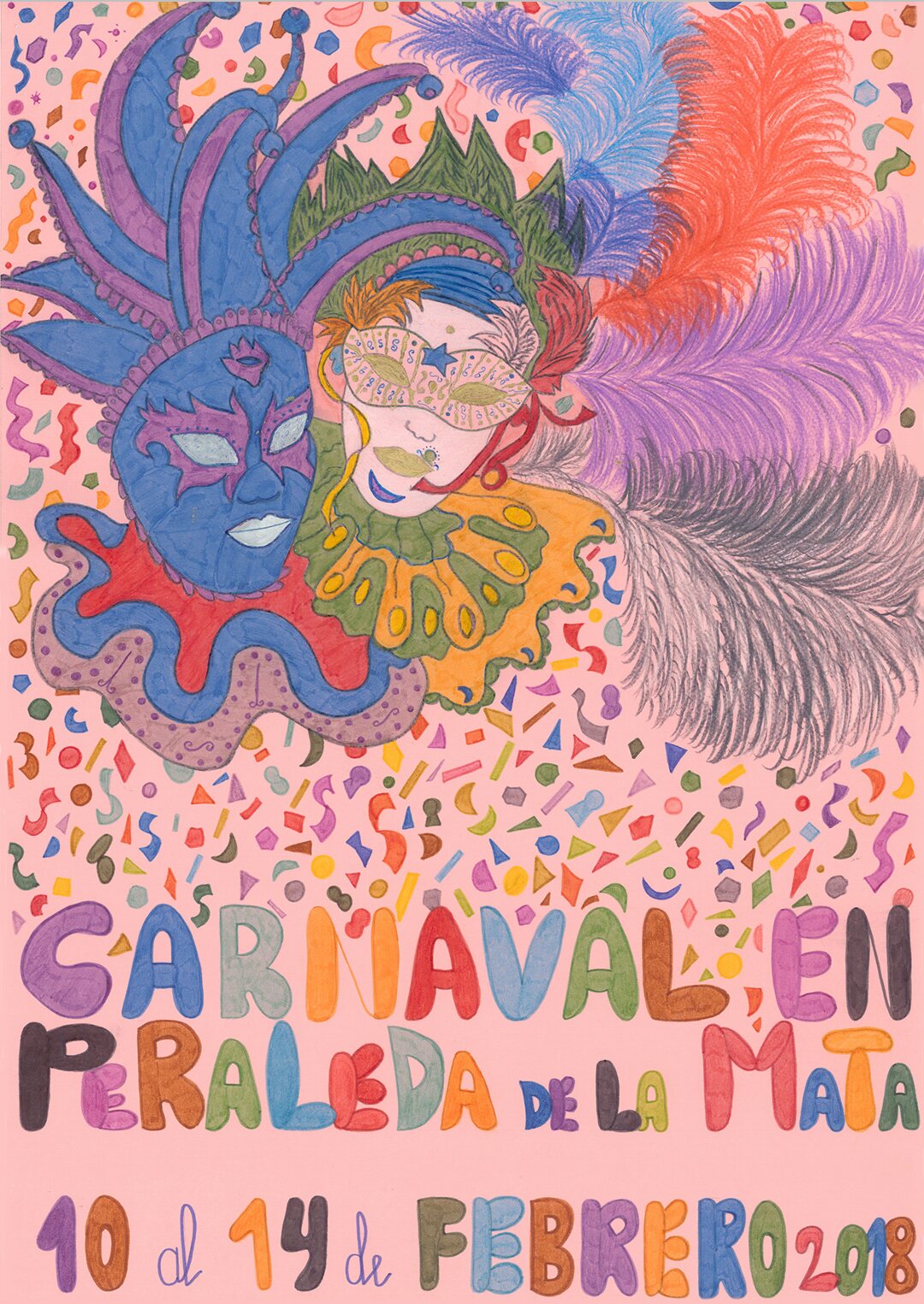 Fallado el concurso de carteles de carnaval 2018. En la categoría de adultos, el trabajo ganador, cartel que anuncia los carnavales de Peraleda de la Mata de 2018, es obra de Mª Teresa Comendador Rodríguez. En la misma categoría, el segundo y tercer puesto le ha correspondido a los carteles presentados por Diego Zamora Sánchez y Alejandro Rufo López. En la categoría infantil, los trabajos presentados por Candela Sánchez, Mohamed Bousabia y Ángela Camacho han ocupado el primer, segundo y tercer puesto respectivamente.