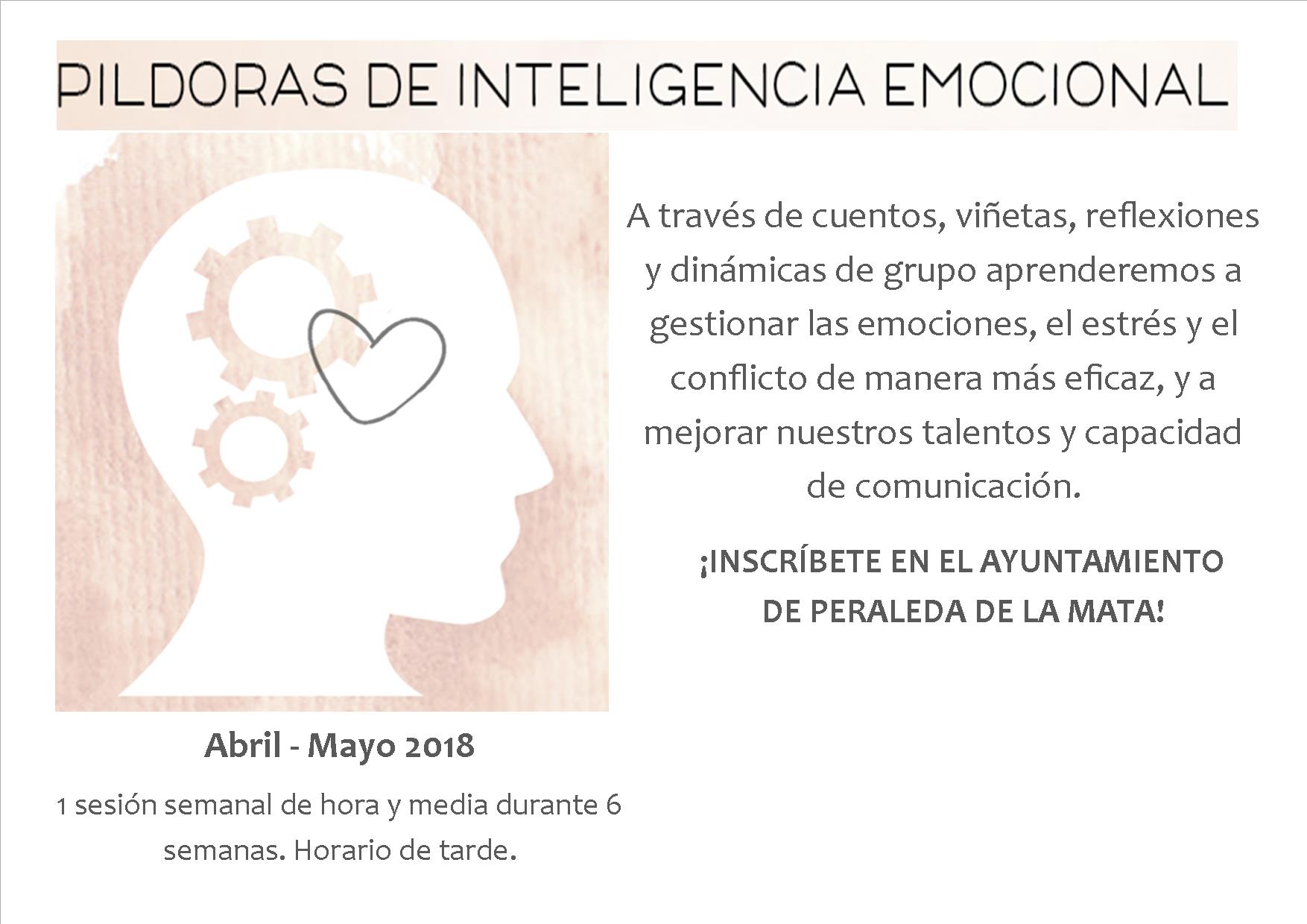 Abierto el plazo de inscripción para participar en un Taller de Inteligencia Emocional que se impartirá en Peraleda de la Mata próximente. Los interesados pueden apuntarse en el Ayuntamiento hasta el próximo 15 de Marzo. La iniciativa, promovida por la Universidad Popular de Peraleda de la Mata, está financiada por la Diputación de Cáceres, dentro del Programa Activa Cultura 2018.