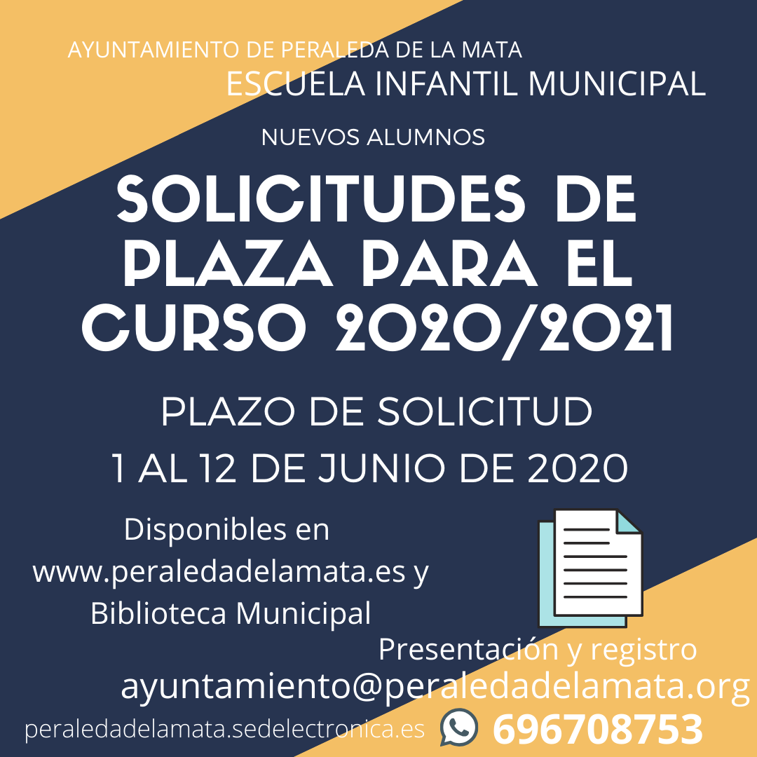 Del 1 al 12 de Junio de 2020 está abierto el plazo de solicitudes de nuevos alumnos en la Escuela Infantil Municipal para el curso 2020/2021. ...