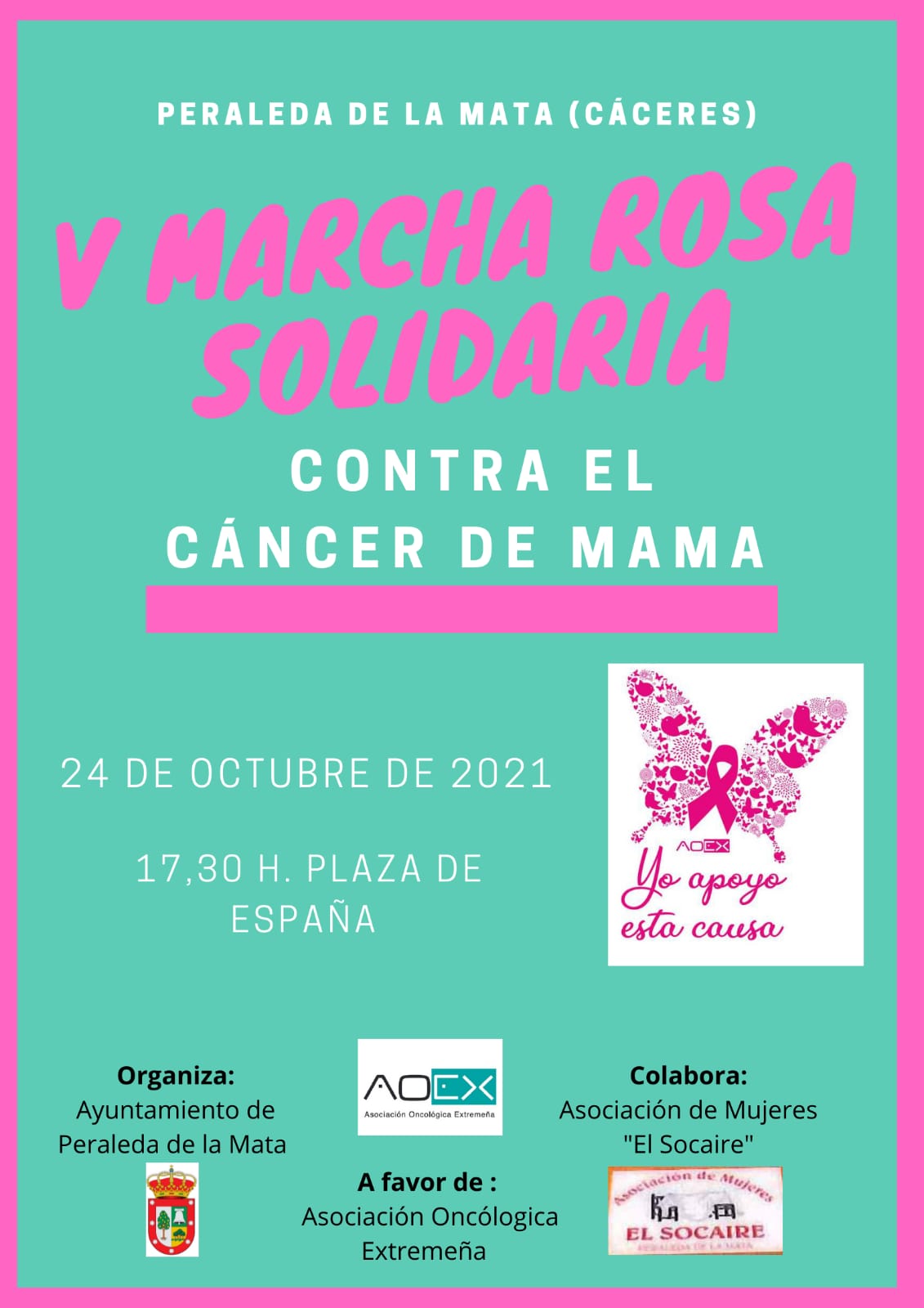 El próximo domingo, 24 de Octubre, celebraremos en Peraleda de la Mata la V Marcha Rosa Solidaria a favor de la Asociación Oncológica Extremeña.